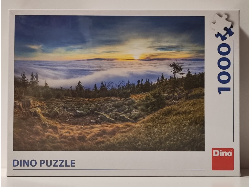 Toto puzzle zachycuje jedinečný pohled z Ještědu, kdy se krajina probouzí do nového dne a slunce pomalu vystupuje nad nekonečným mořem mraků. Kombinace horské vegetace, kamenitého terénu a jemných barevných přechodů na obloze vytváří velmi klidnou a přirozenou atmosféru.