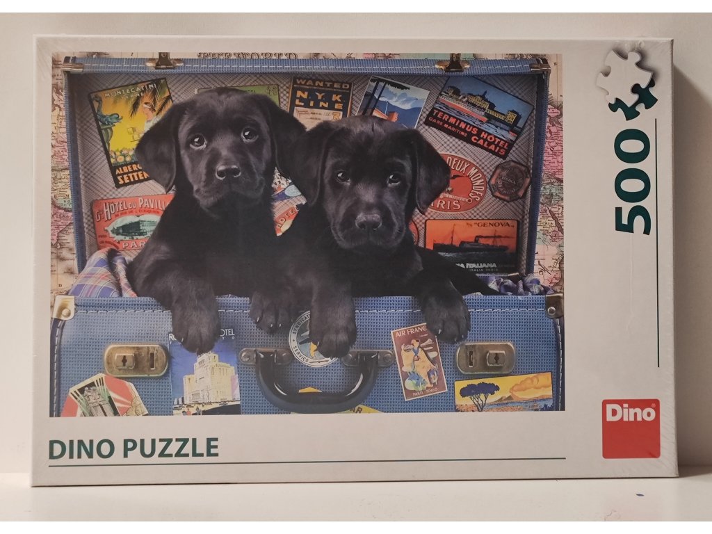 Skládání je díky dobře rozlišitelným částem motivu pohodové a přehledné. Výrazná silueta štěňat kontrastuje s barevným pozadím kufru a cestovatelských detailů, což pomáhá při orientaci během skládání a přináší radost z postupného odhalování celého obrázku.
