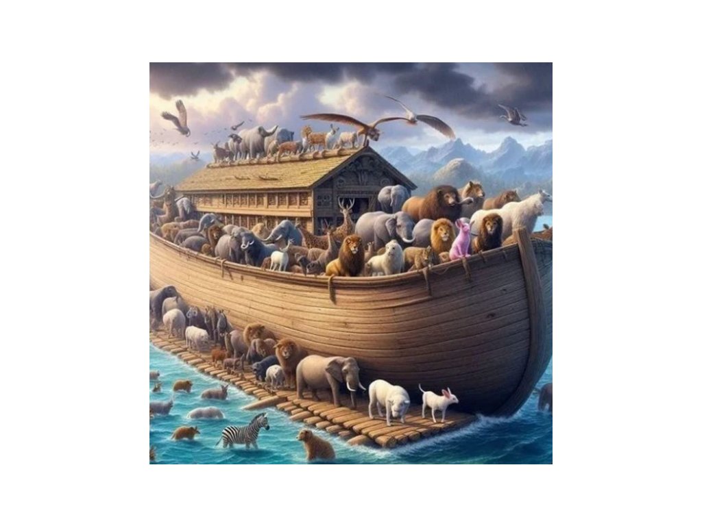 Vstupte do fascinujícího biblického příběhu s motivem „Noemova archa“, kde zvířata všech druhů kráčí po palubě lodi, zatímco se nad nimi klene duha a symbol naděje. Tento obraz přináší klid, harmonii a poselství ochrany života.