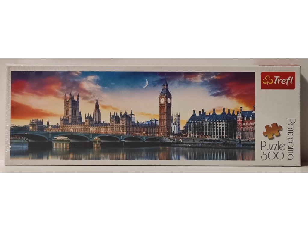Toto puzzle obsahuje 500 dílků a je navrženo v panoramatickém formátu, který zdůrazňuje šířku motivu s historickou panoramatickou scenérií Londýna. Po složení vznikne zobrazení známých londýnských památek včetně hodinové věže Big Ben a části Westminsterského paláce, které dohromady vytvářejí poklidnou vizuální kompozici.