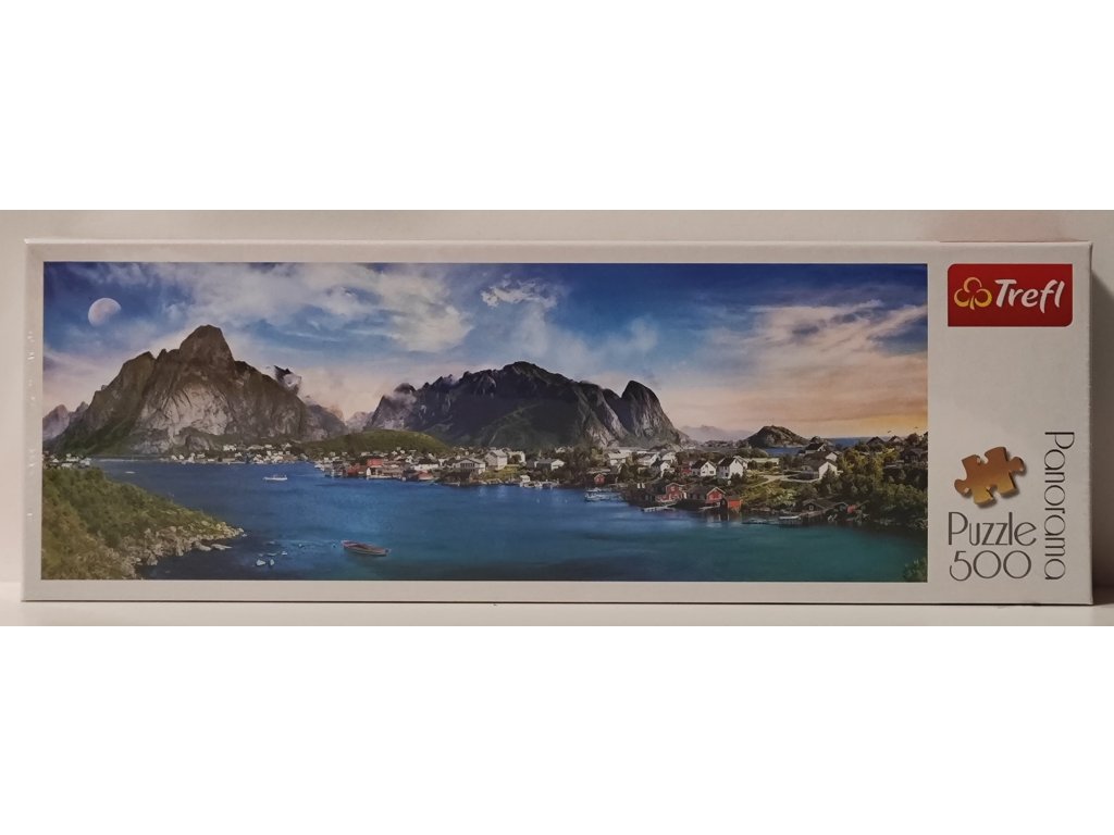 Toto puzzle obsahuje 500 dílků a je navrženo v panoramatickém formátu, který klade důraz na šířku motivu a přehlednou horizontální kompozici. Po složení vzniká obraz malebné krajiny Lofot, ostrovního souostroví v Norsku, kde se střídají dramatické hory, klidné fjordy a vodní přechody.
