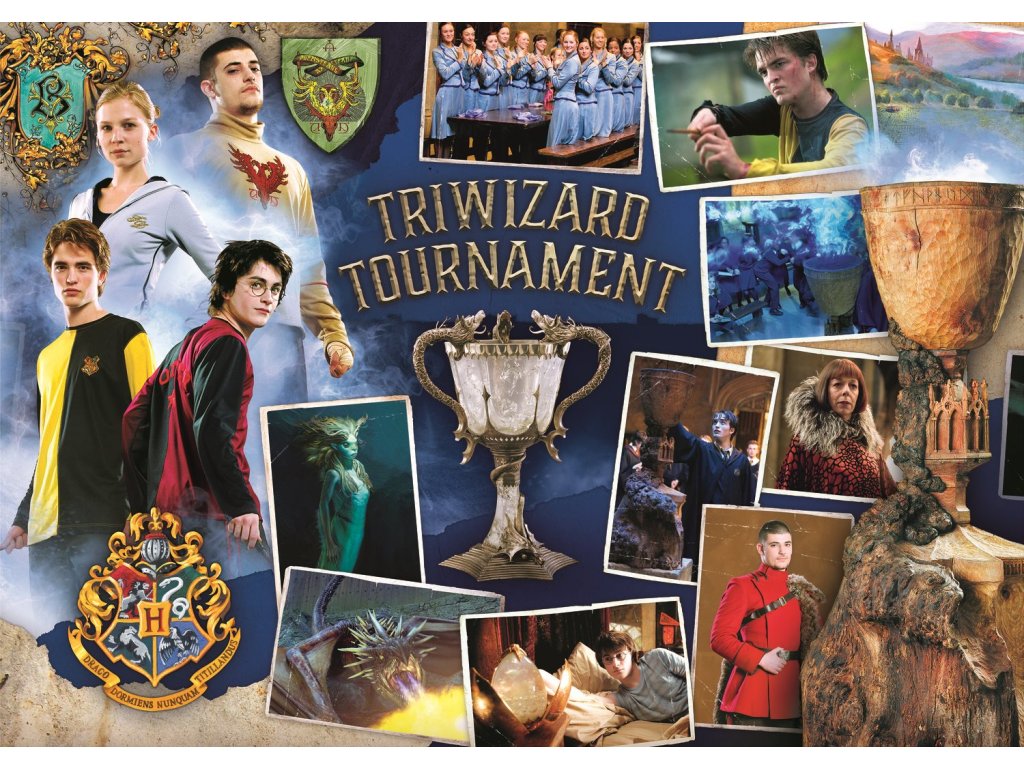 Objevte svět magie s touto úžasnou sadou tří puzzle od TREFL! Sestavte ikonické momenty ze světa Harryho Pottera – od napínavého Turnaje tří kouzelníků, přes akční zápas ve famfrpálu až po majestátní Bradavice.
